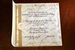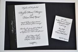 Custom-designed wedding invitations, seating scrolls, envelope lettering, formal citations, awards, baby announcements and award-winning fine art pieces.